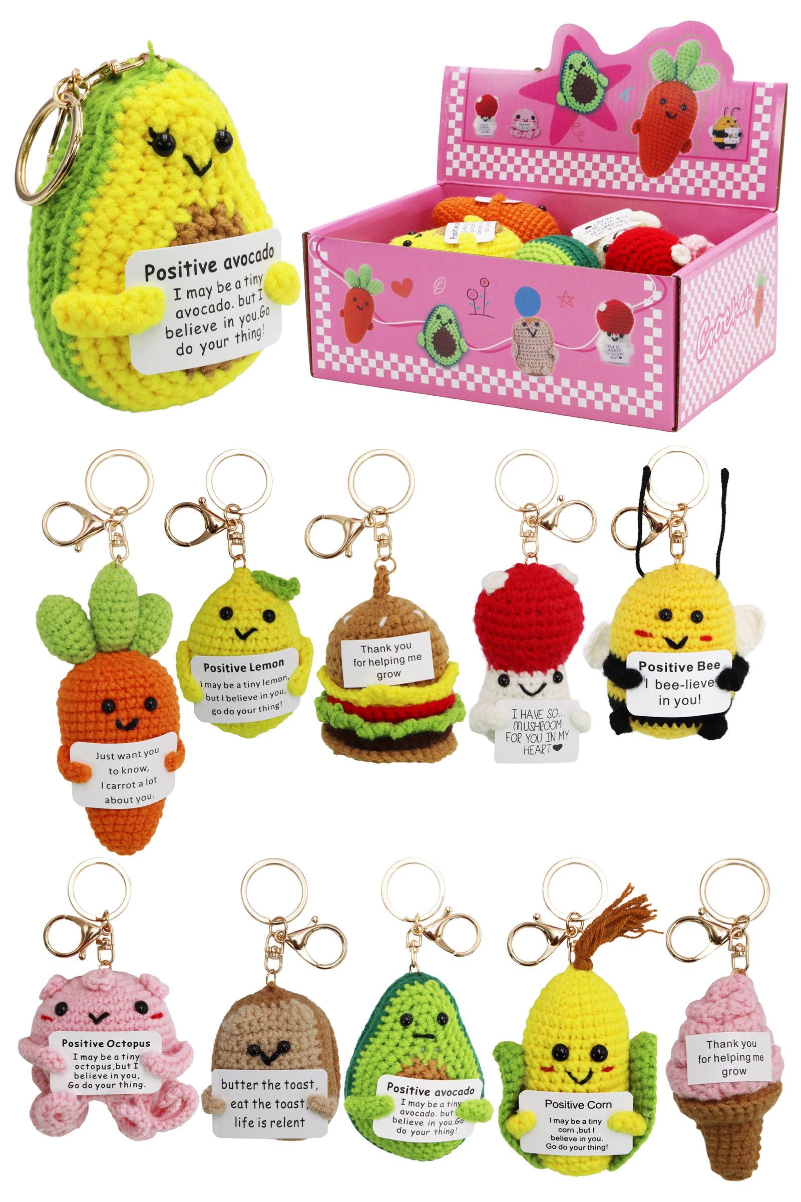 Positive Quote Emotional Support Food Crochet Key Chain